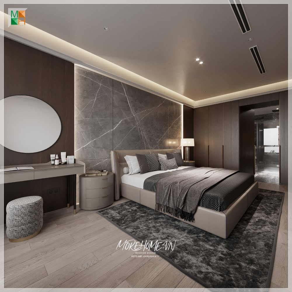 Đá ốp vách phòng ngủ có màu ghi sang trọng và hiện đại để tạo nên sự thu hút.